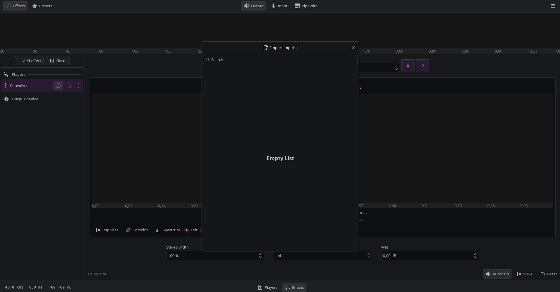 Section titled “Alternative to EasyEffects”As an alternative you can try using JDSP4Linux, which is an audio effect processor for PipeWire and PulseAudio clients.