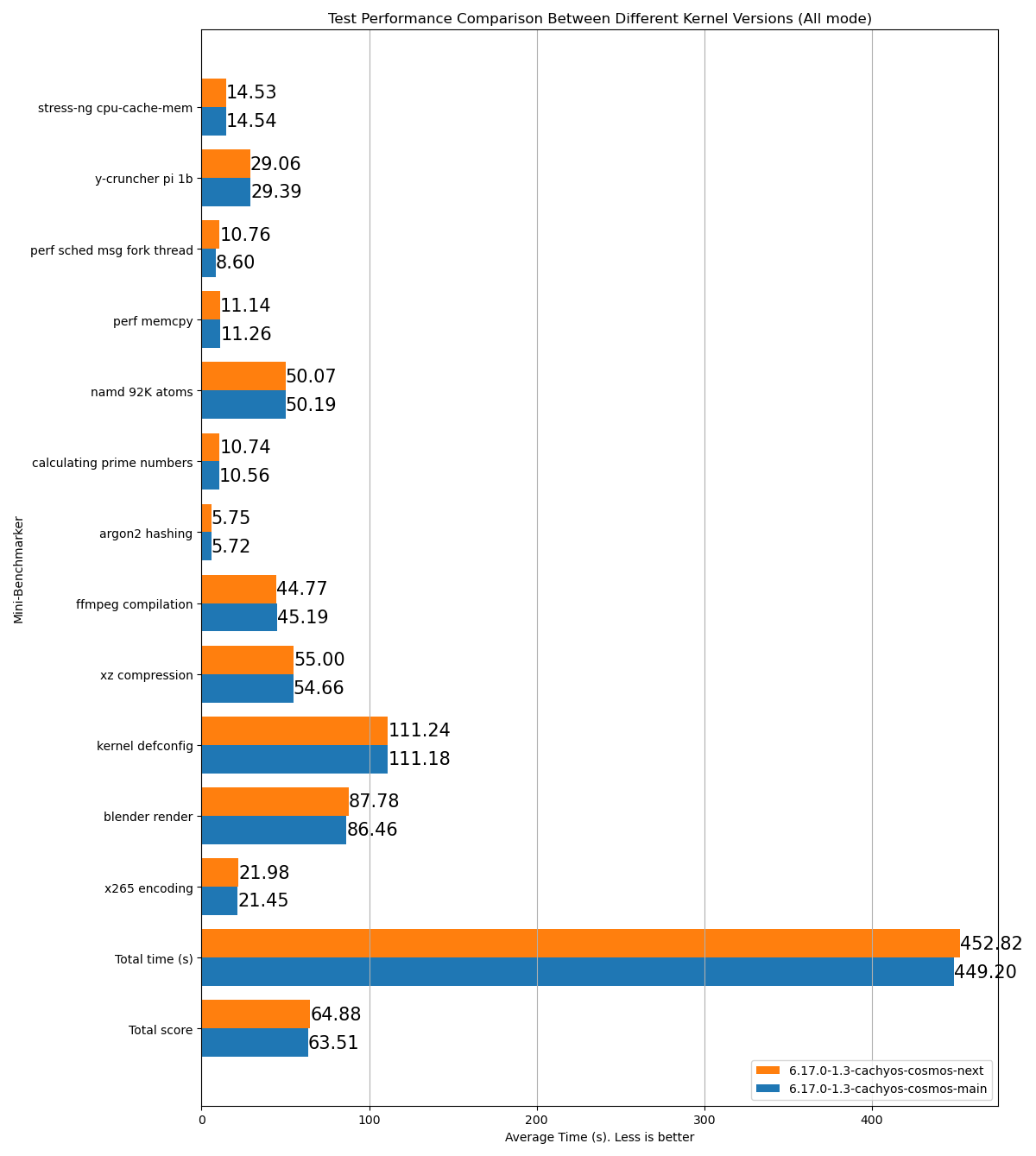 Section titled “Why X scheduler performs worse than the other?”- There are many variables to consider when comparing them. For example, how do they measure a task’s weight? Do they prioritize interactive tasks over non-interactive ones? Ultimately, it depends on their design choices.